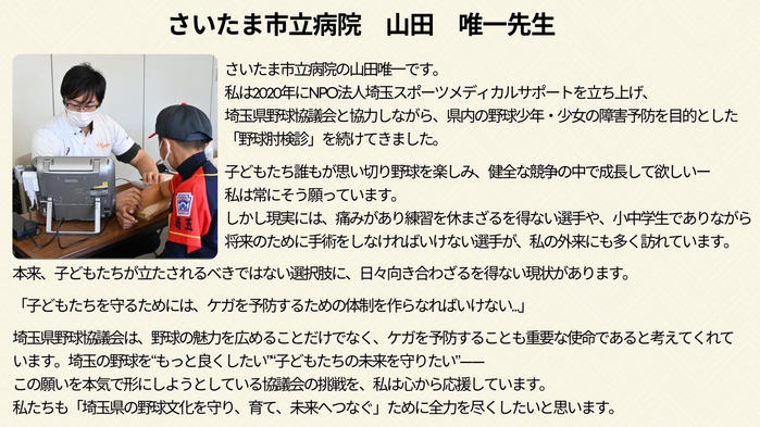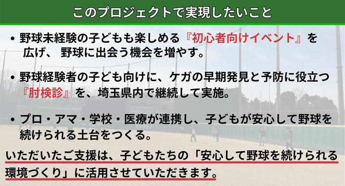 埼玉の野球を未来につないでいくこの挑戦に、どうか皆さまもお力添えいただけますと幸いです。