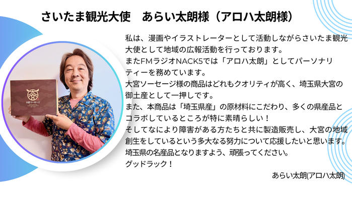 埼玉の素材と人の想いが詰まった『大宮ソーセージ』を、ぜひお試しいただけますと幸いです。 -
