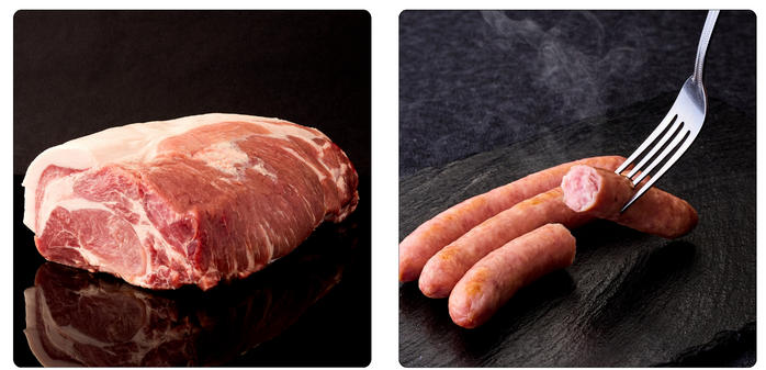 ブランド豚は、脂の香りが華やかで、赤身はきめ細かくジューシーであり、しっかりとした旨み特徴です。 -