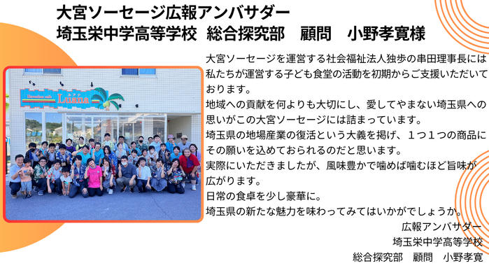 埼玉の素材と人の想いが詰まった『大宮ソーセージ』を、ぜひお試しいただけますと幸いです。 -