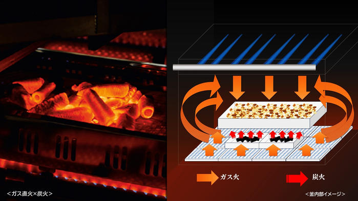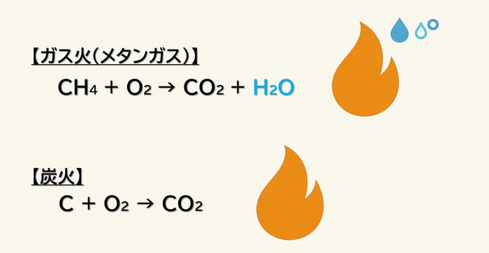 炭は燃えても水蒸気を出さないため、ナッツの直下に置くと乾いた熱がナッツを包んでバリアの役割を果たし、ガスの水蒸気の影響を受けにくくなります。