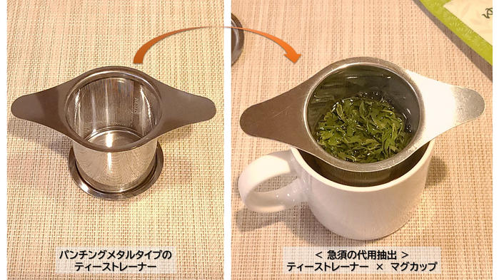 私は特に、洗いやすく使い続けても味に影響が出にくいパンチングメタルタイプが気に入っています。(ティーストレーナー × マグカップ) -