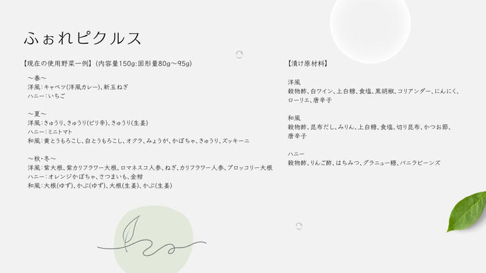 野菜や果物の旨みを引き立てるピクルスと、素材の力をそのまま閉じ込めたジェラート。甘い時間と、食事に寄り添う一品を、シーンに合わせて楽しめます。