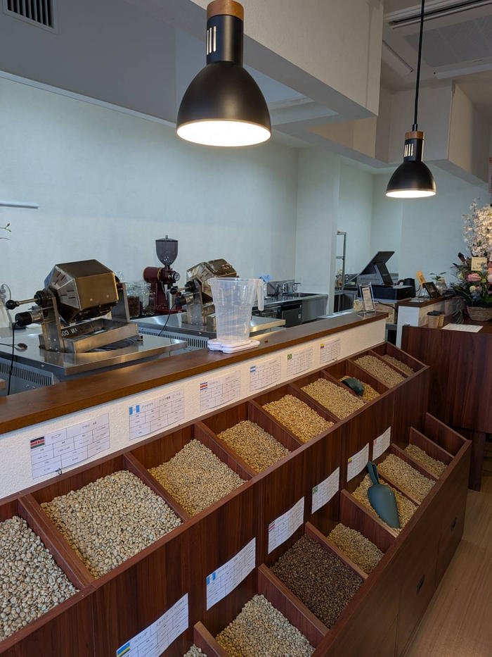 当店では、お客様にこの「生豆」の状態から実際に選んでいただき、目の前で焙煎することで、香りと音を楽しみながら“自分だけの一杯”をつくる体験をご提供しています。