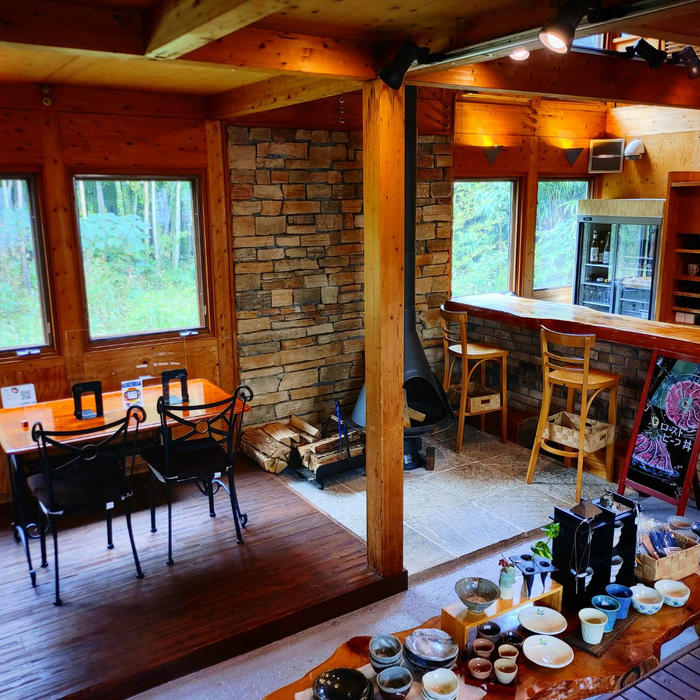 - 当店は、元々コタエルハウスのモデルハウスだった建物を改修し開業しました。木の温もりが感じられ、まるで避暑地の別荘に来たかのような店内で、地元のオーガニック野菜を活かしたこだわりのお料理をご提供しています。
