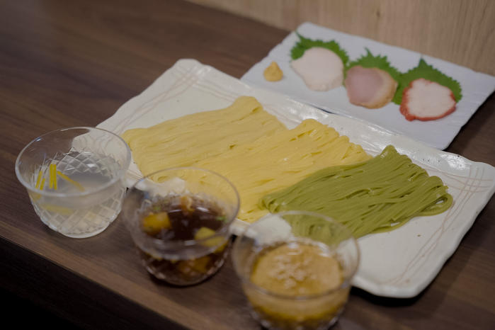 3種類のうどん(にんじん、ゆず、抹茶)と3つのタレを組み合わせることで、全部で9通りの食べ方ができます。それぞれの組み合わせで、味の違いや新しい美味しさを発見できるので、それぞれの良さをより楽しんでいただけます。