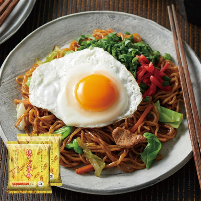 具材が全て入っていながらも、レンジでチンするだけで簡単に美味しい焼そばが食べられる。そんな理想を追い求め、麺のコシ、麺の味付けに四苦八苦し、開発に10年を要しました。そうして開発された「焼そば革命」はいわば、長年の知見、経験によって誕生した、粉問屋の叡智の結晶です。