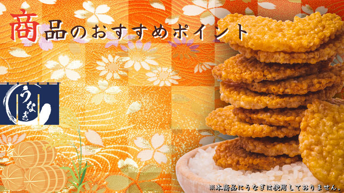 サクサクした食感とともに、お米のほんのりとした甘さと調和したうなぎのたれの風味を楽しんでいただける商品となっております。 -